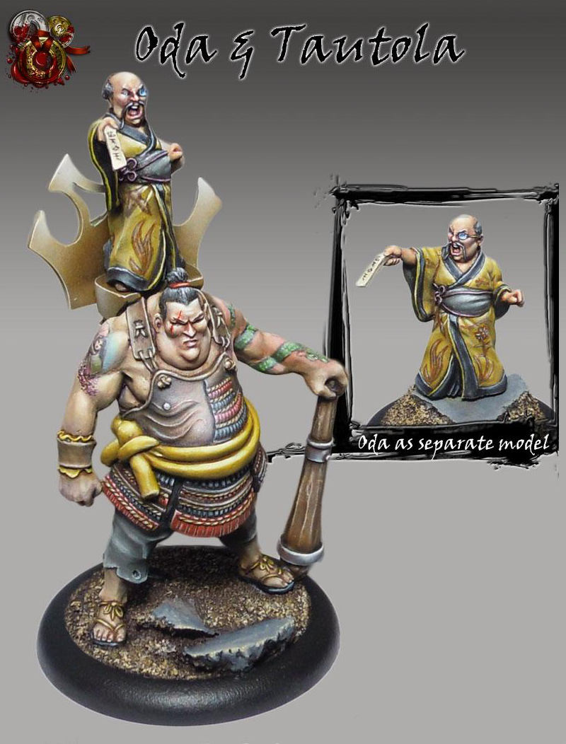 The legendary Jumo sensei, and current Oyabun of the Iron Fist gumi, Oda is small only in stature, for everything else about this no nonsense boss is anything but. Oda likes nothing more than to drill and sculpt his famous Buto into pure weapons of mass and muscle. His physique might prevent him from demonstrating his extensive knowledge of the art of Jumo but he is a skilled and quick teacher, barking instructions and jabbing directions with his ornate fan, swiftly turning even the amateur into a competent wrestler and a warrior into a master. Tautolu is never far from his diminutive master, either stepping forward to clear his path through the streets of Jima and saddling his famous platform, allowing his sensei a better vantage point from which to command his men. Keenly aware of danger and quickly removing threats with a crushingly accurate and brutal blow from his tetsubo, Tautolu is the bite to Oda’s bark.
